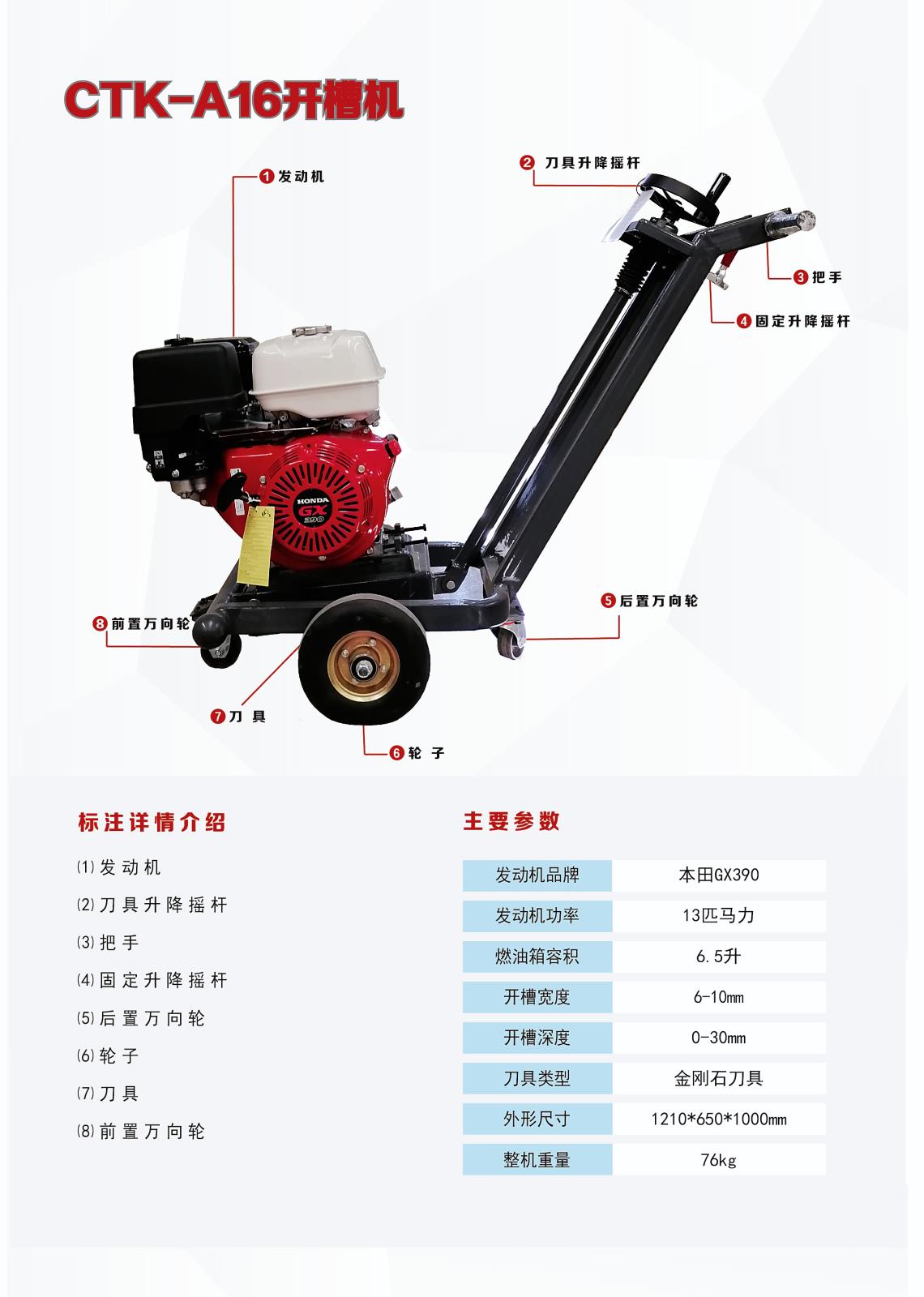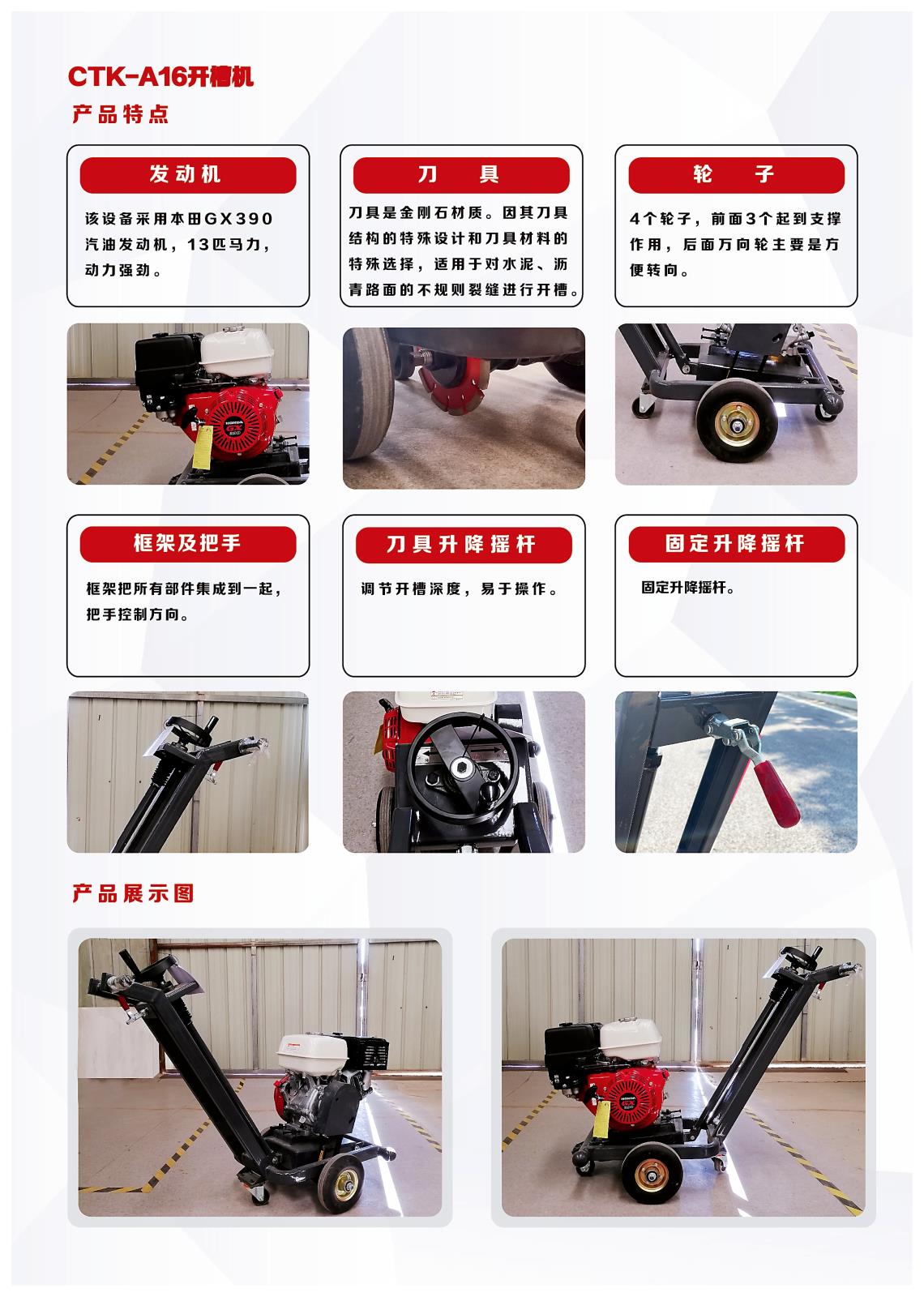 長(zhǎng)泰公路在多次施工中總結(jié)經(jīng)驗(yàn),推出了全新版本的A16開(kāi)槽機(jī),向后拉的行走方式,方便施工人員針對(duì)不規(guī)則裂縫進(jìn)行切割、開(kāi)槽;開(kāi)槽深度可調(diào)節(jié)0-30mm;全新輪胎設(shè)計(jì),對(duì)縫方便,日均施工量可達(dá)5000米。